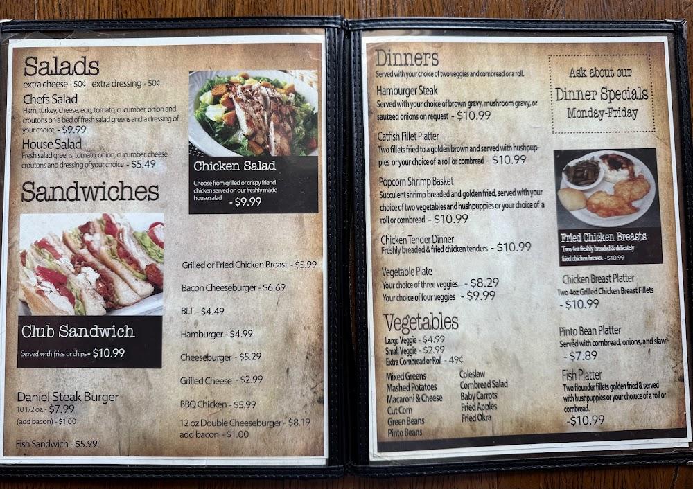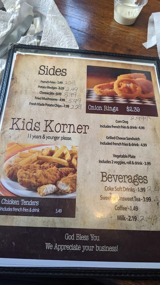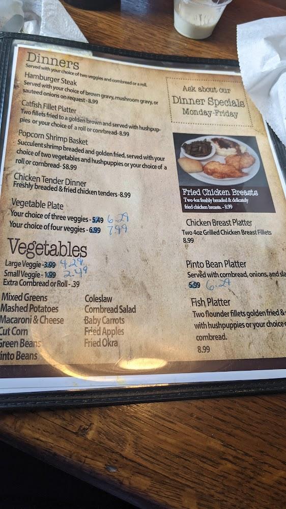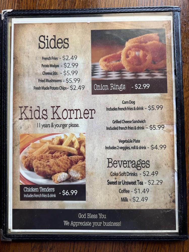 Favorites such as chicken tenders and hamburgers shine, while the special vegetable plate is a healthy choice. Diners can also enjoy delicious sides, including cornbread salad and macaroni and cheese.
